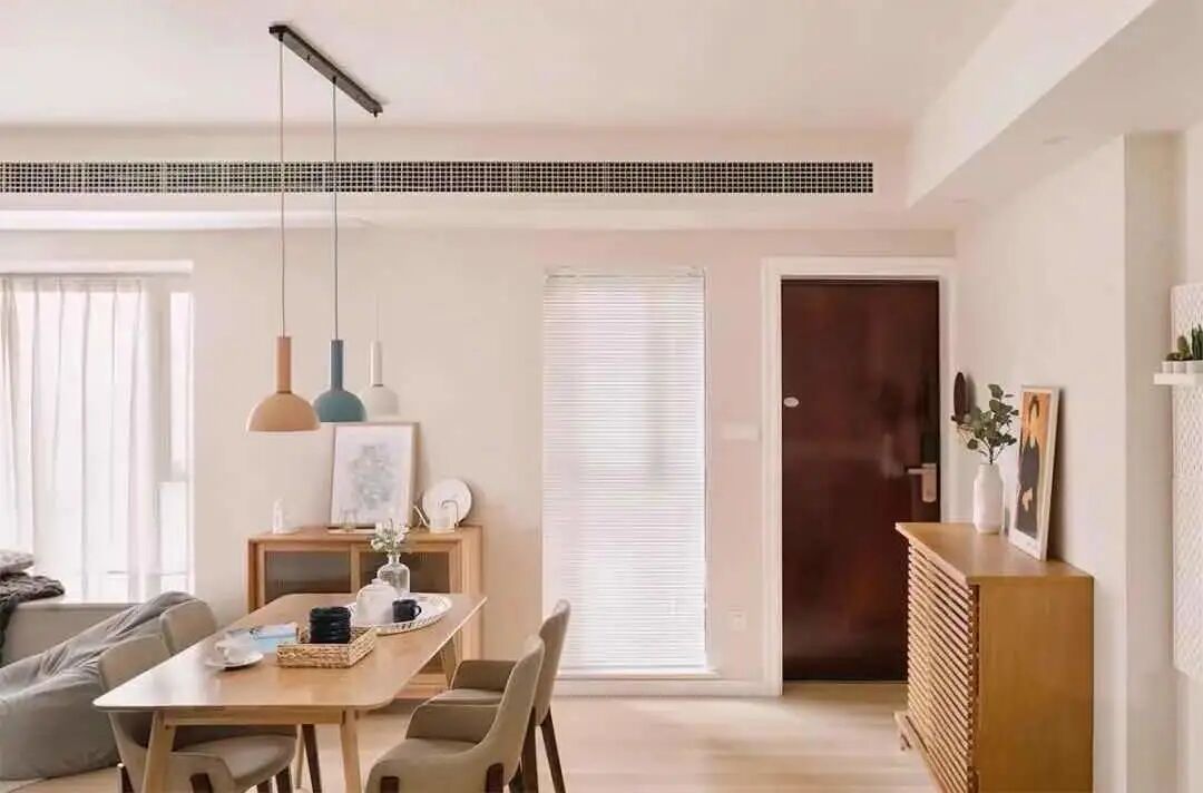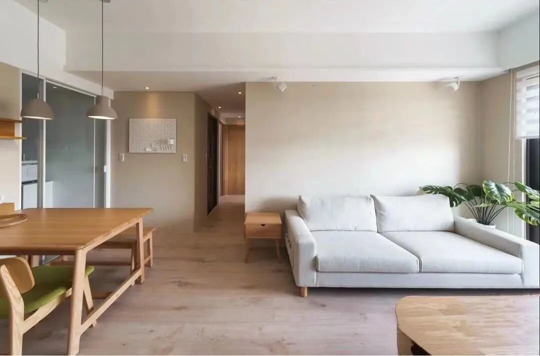 整体色系搭配简约耐看,大面积的奶油白+奶茶色为基调,用原木色点缀。大白顶+感应灯恰到好处的灯光点缀,光影流动间,把归家的仪式感与氛围感瞬间拉满,搭配上分层、分区的设计形式,也多了一些现代感